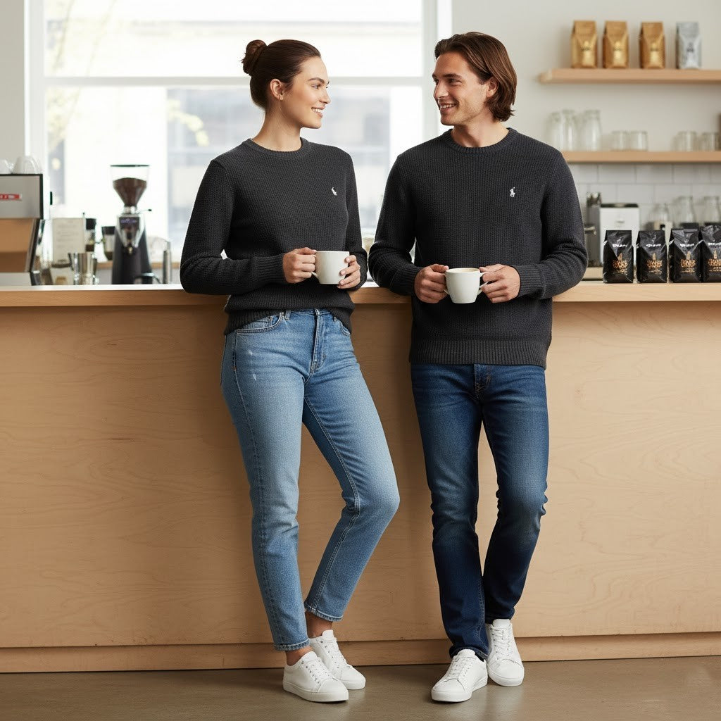 The ribbed cuffs, collar, and hem ensure a perfect fit that retains shape, while the versatile color makes it easy to pair with jeans, chinos, or smart trousers. Whether for casual outings or cooler evenings, this sweater adds a touch of effortless elegance.